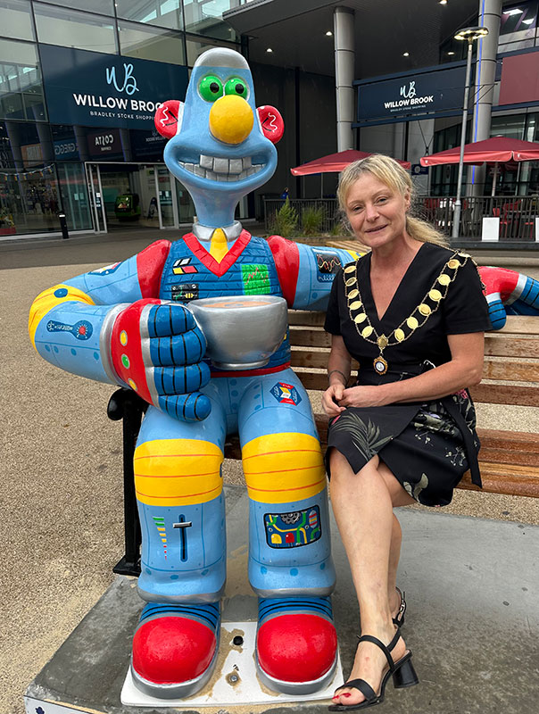 Mayor with Wallace at the Willow Brook Centre – Gromit Unleashed 3 Trail – Summer 2025