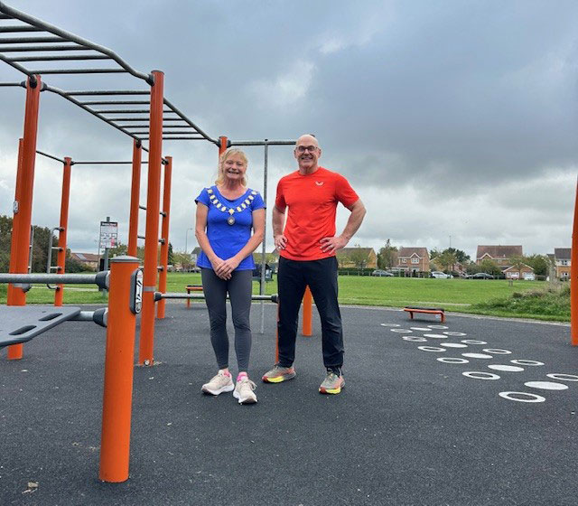 Mayor, councillors, local resident and PT instructor attending the Jubilee Green leisure equipment taster session on Wednesday 8th October 2025