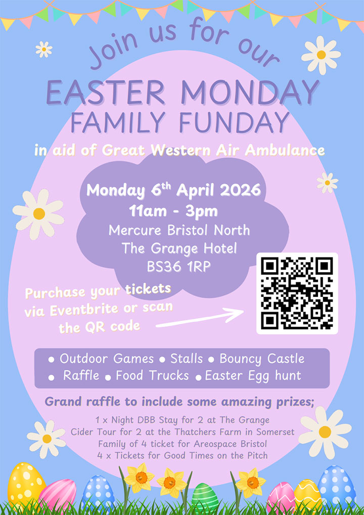 Join us for our Easter Monday Family Funday in aid of Great Western Air Ambulance on Monday 6th April at the Mercure Bristol North.